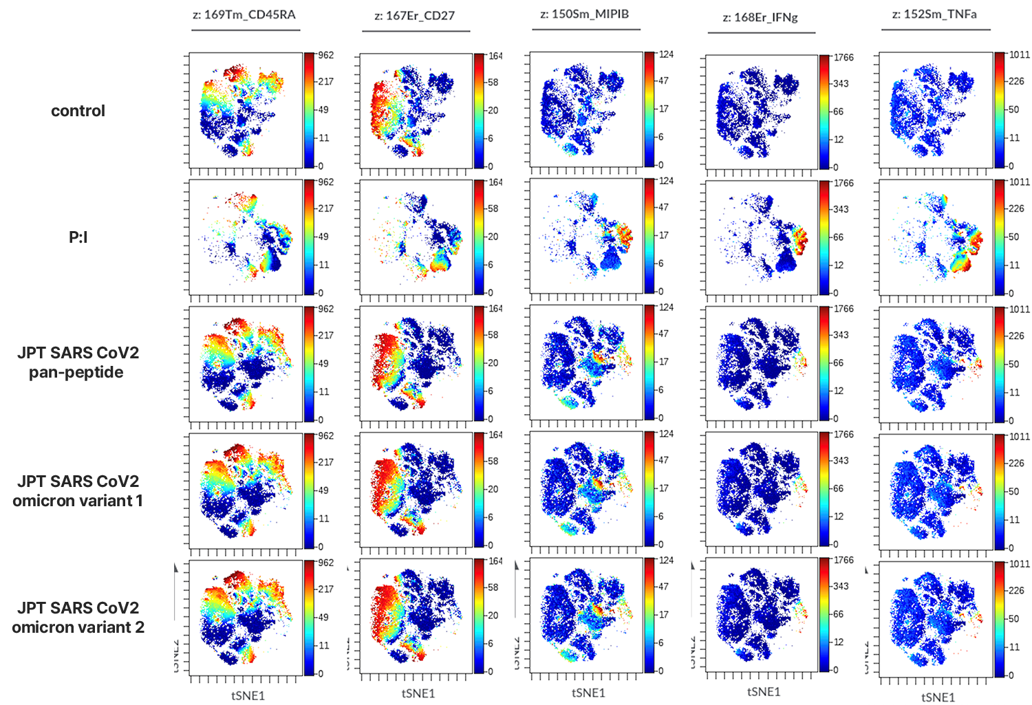 (연구결과 일부 예시) SARS-CoV2 특이적 T 세포를 질량세포분석기술을 통해 검출